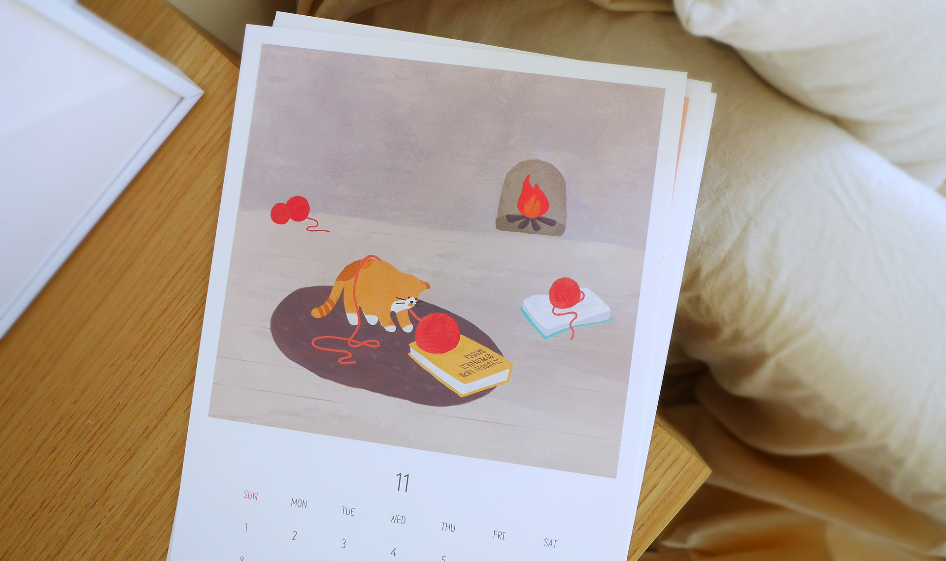 책읽는 고양이는 디자인랩 사다리에서 만든 캐릭터입니다. 사계절의 모습 속에서 책과 함께 편안하게 노는 고양이 모습을 일러스트레이션으로 그렸습니다. 사무적인 굿즈가 아니라 자유롭고 따뜻한 감성을 담은 제품을 제작하고 싶다면, 책읽는 고양이 일러스트를 활용해보세요. *하단의 일러스트에서 적용 가능하며 문구, 로고 추가가 가능합니다. | ||